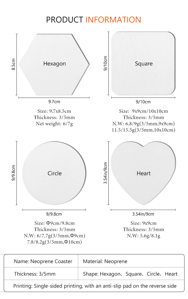 • Sublimation Blank Cup Coasters Neoprene Mug Coaster Custom Mug Coaster for Single-sided Printing Coasters