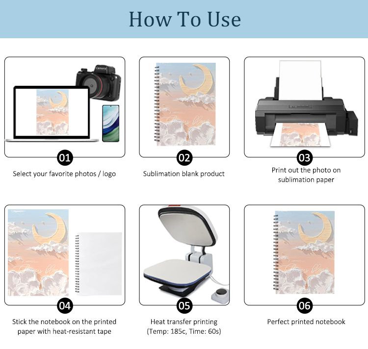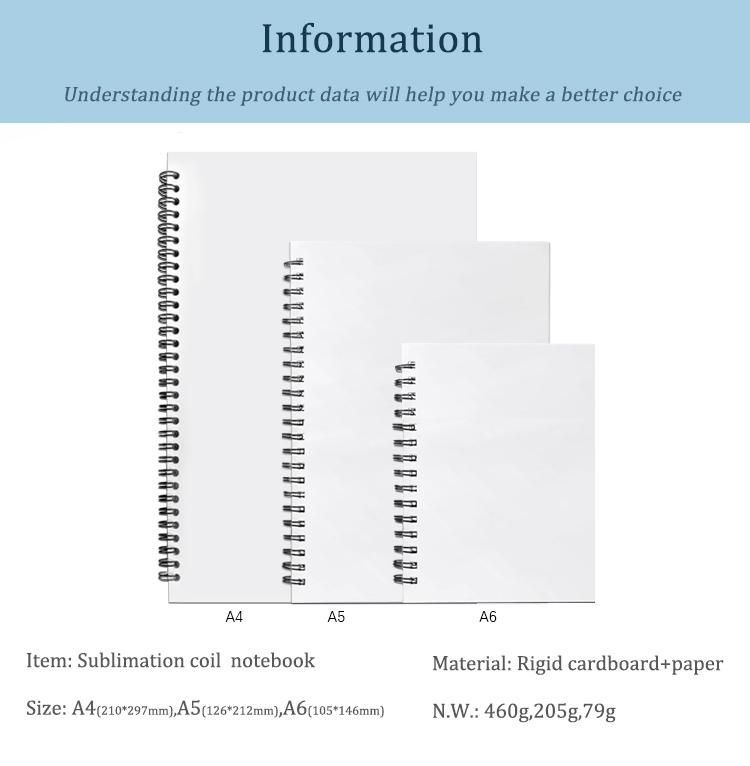 Sublimation Blank Heat Transfer Spiral Notebook - Hardboard Cover Journal, Customizable Spiral-Bound Notebook | Heat-Transfer Printable Hard Cover Spiral Notebook for Daily Use Sublimation Stationery