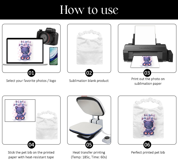 • Sublimation Blank Polyester Pet Bib Printable Dog Bandana with Elastic Neck Strap, Toweling Back & Storage Pocket | Reusable Pet Scarf for Puppies & Small Animals