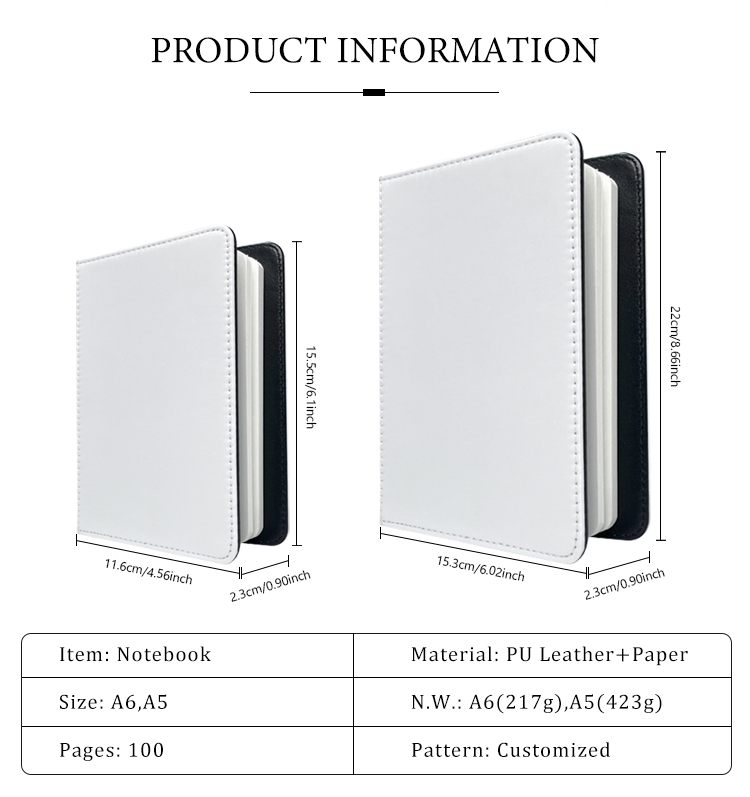 Sublimation Blank PU Leather Notebook School Office PU Full Width Printable NoteBook Changeable NoteBook A5/ A6