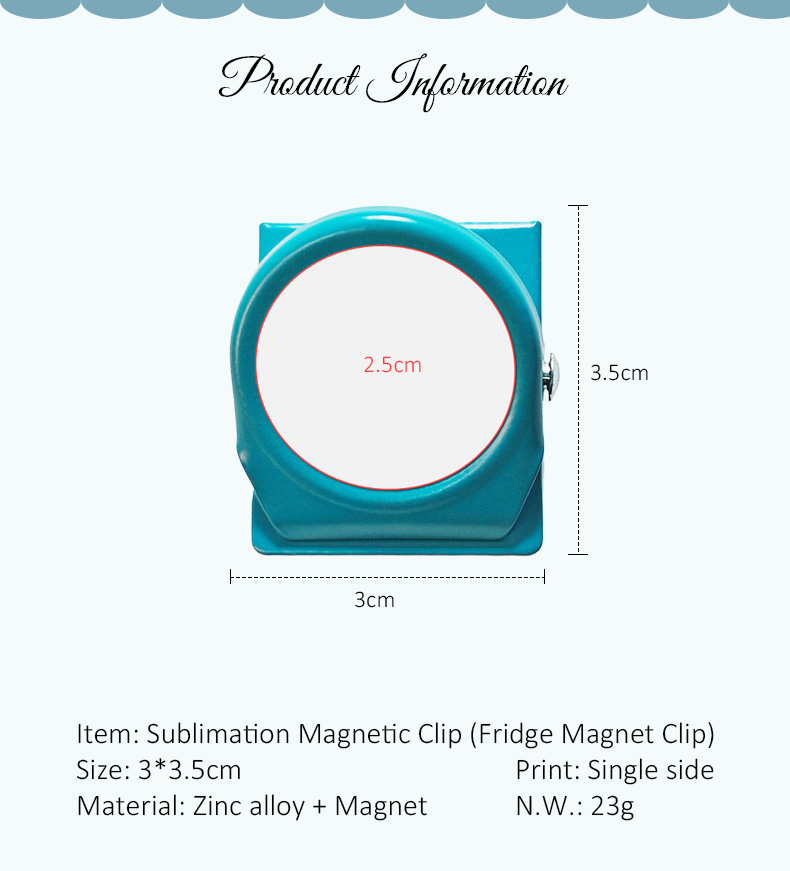 This sublimation blank magnetic clip is crafted from durable zinc alloy, combining a strong magnetic backing with a functional clip design for versatile use.