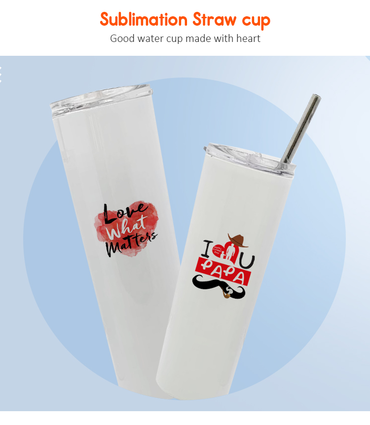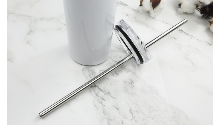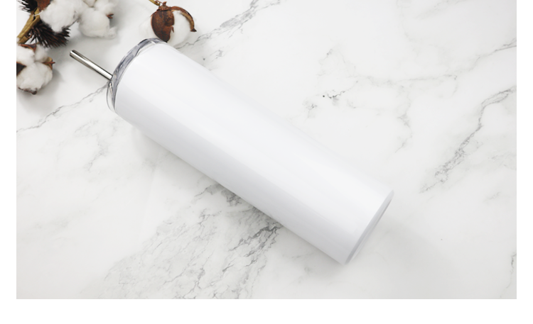 Sublimation White Skinny Tumbler with straws,Stainless Steel slim Tumbler With Lid