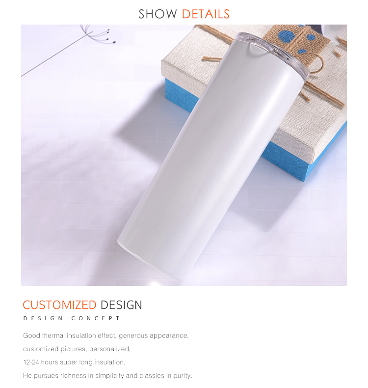 It can be printed with your personalized images or Logo on its body. Made in stainless steel resistant to scratches.Skinny Tumbler with Lig.It is top grade,enduring and wearable,unique gift to your cacual life.