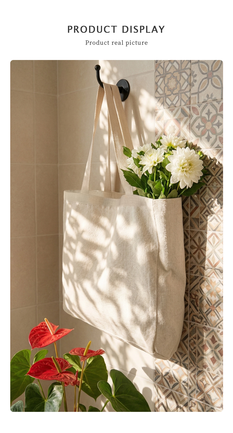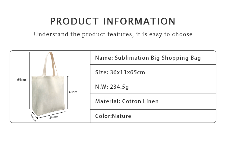 This sublimation blank large cotton linen tote bag is a spacious, eco-friendly accessory crafted from premium cotton linen material, designed for versatile daily use.