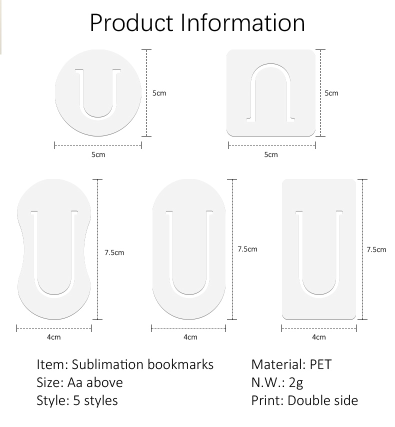 Blank Sublimation Double-Sided Shaped PET Bookmark - Heat Transfer Printable Irregular PET Book Marker, Customizable Double-Sided PET Page Holder