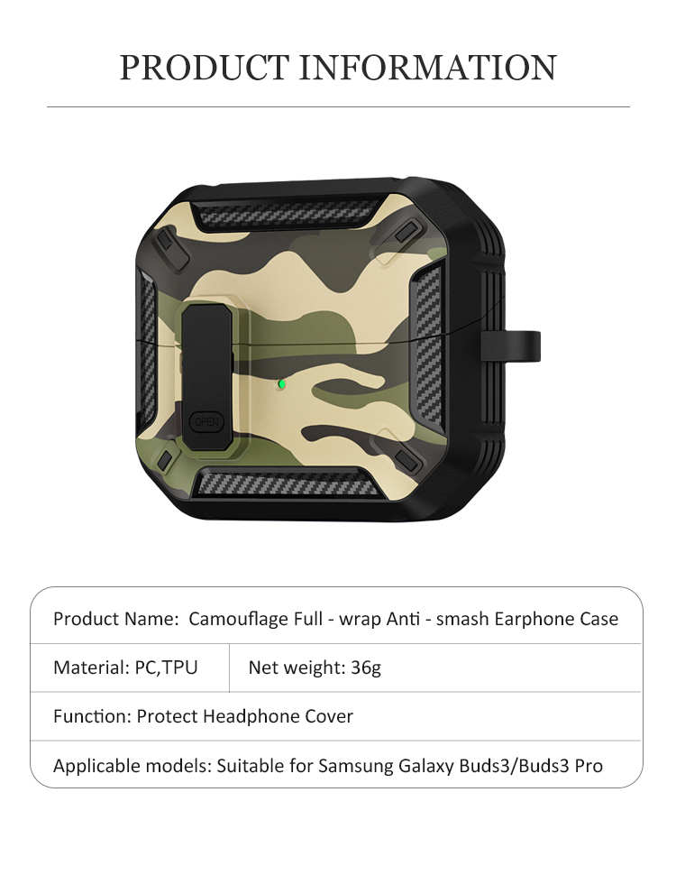 Camouflage TPU Earphone Case for Samsung Buds3/Buds3 Pro Durable TPU Protective Cover Shockproof Case