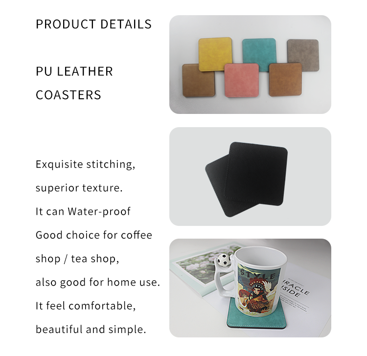 High quality blank PU Leather coaster for sublimation,can be printed on one-sided.