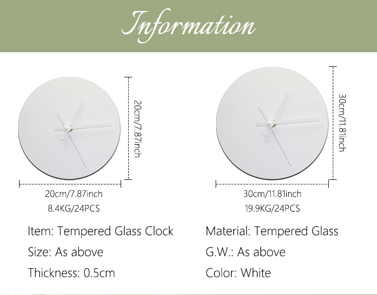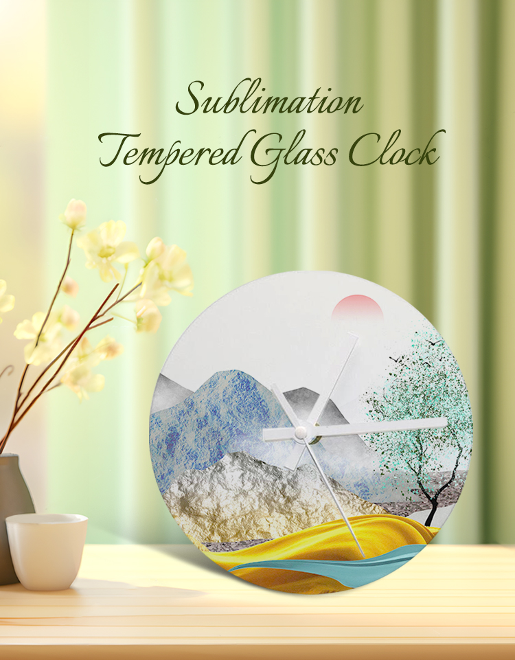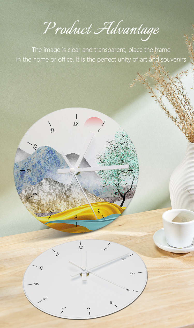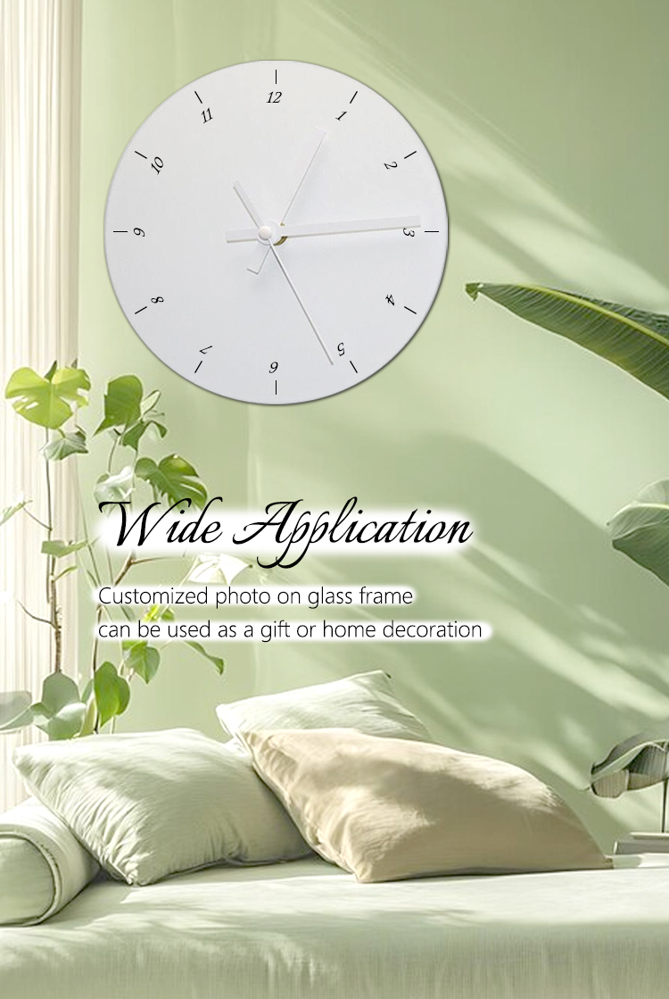 Customizable Sublimation Glass Clock Glass Photo Frame - Heat Transfer Printed Wall Clock / Desk Clock with Black Pointer