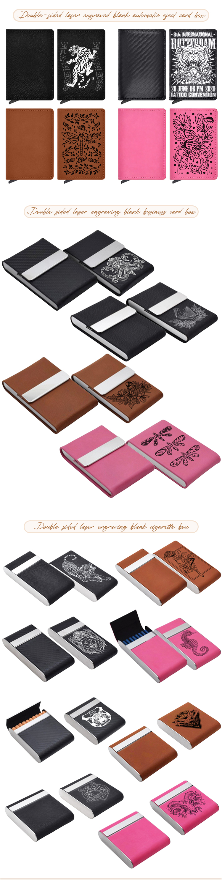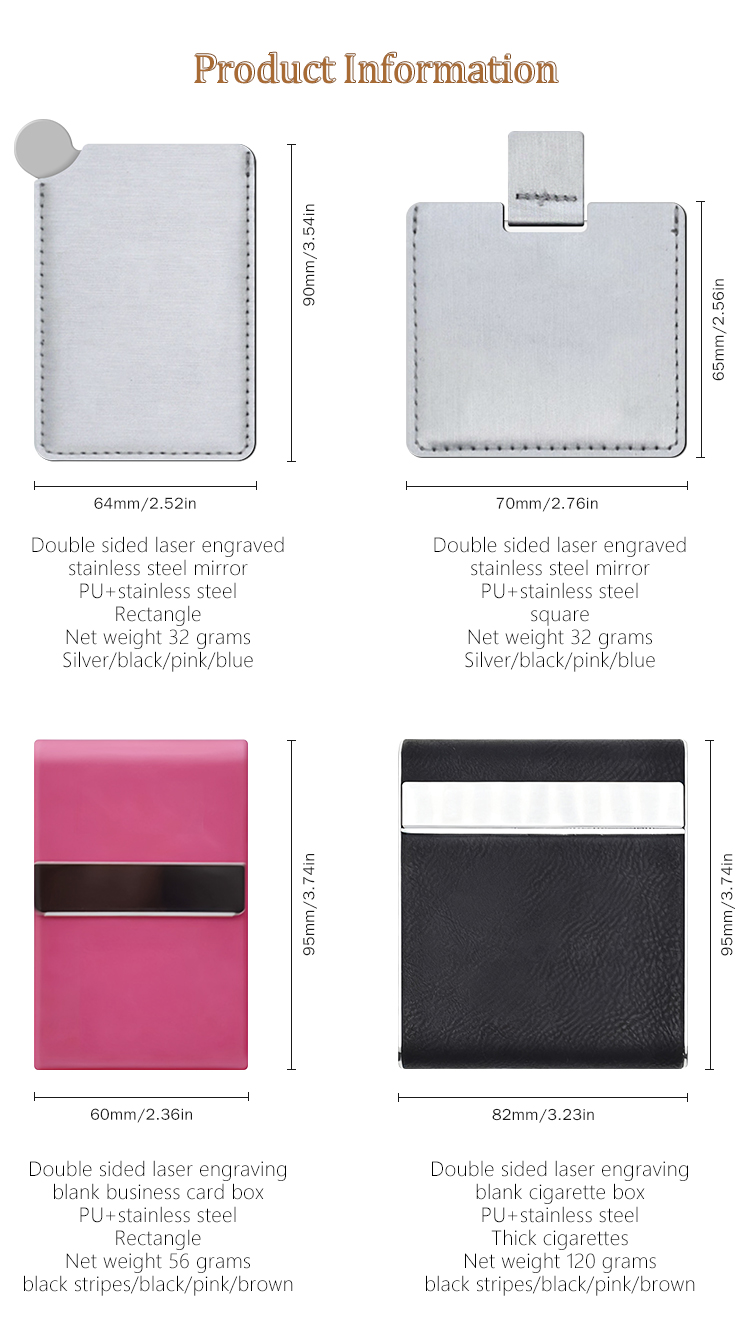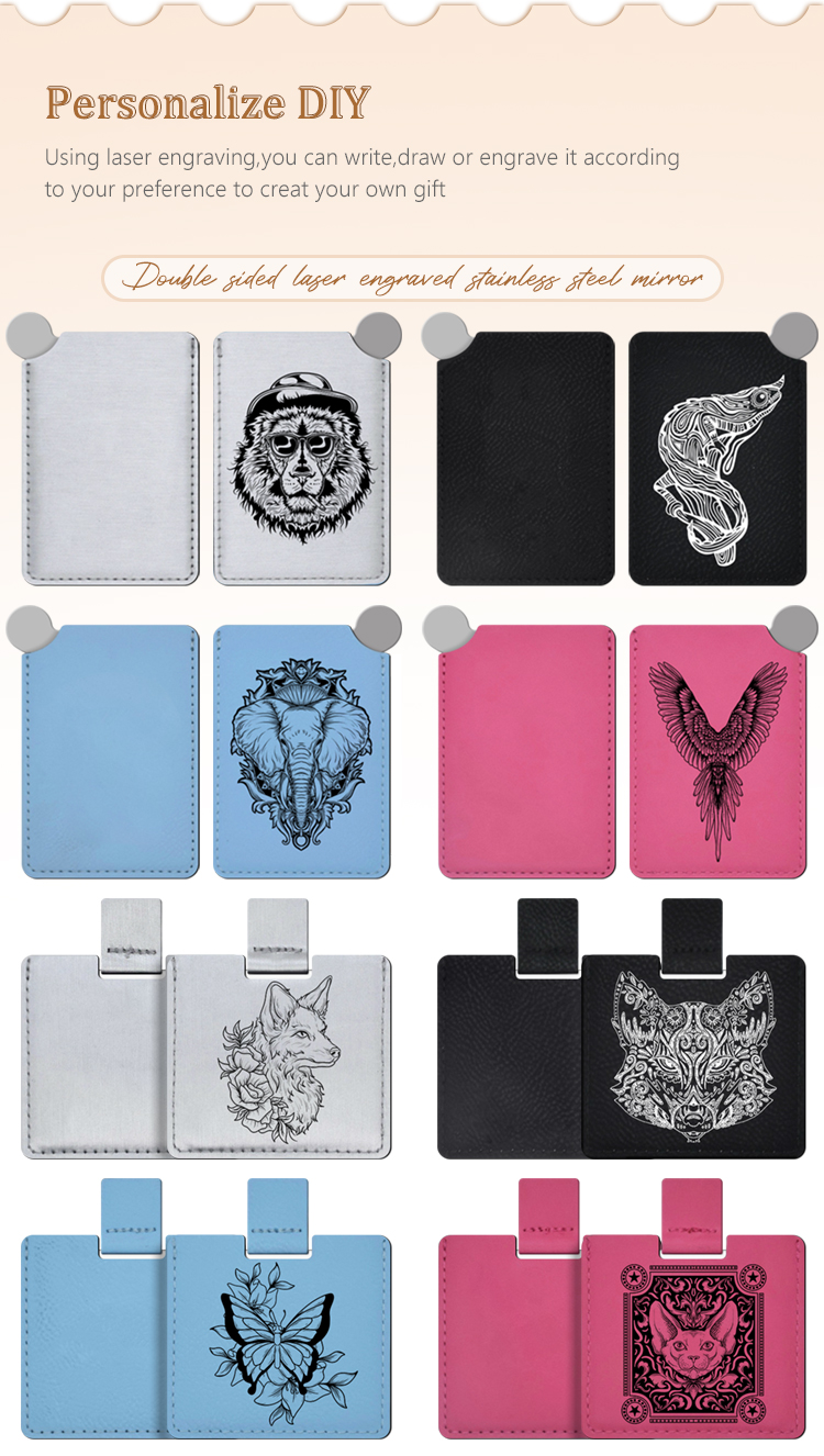 Custom Laser-Engraved PU Leather & Stainless Steel Series - Personalized Mirror with Case, Business Card Holder, Pop-Up Card Wallet, and Cigarette Case (Regular & Slim)