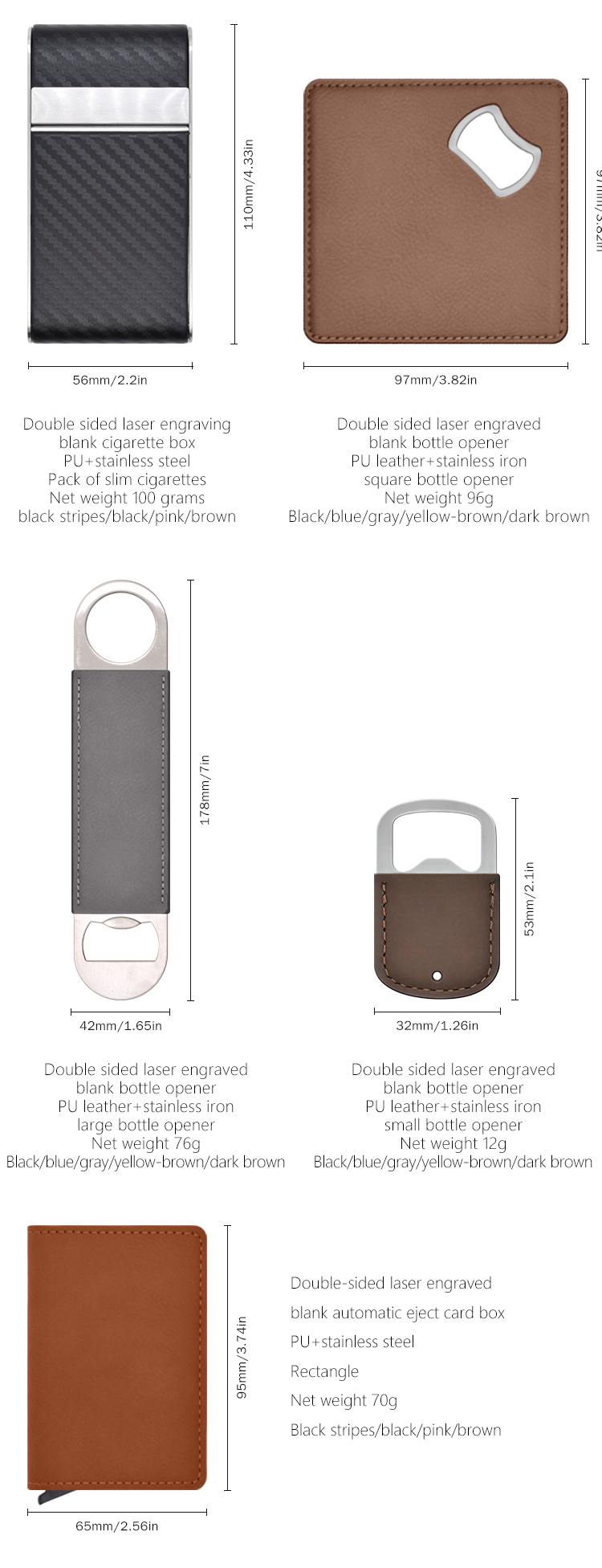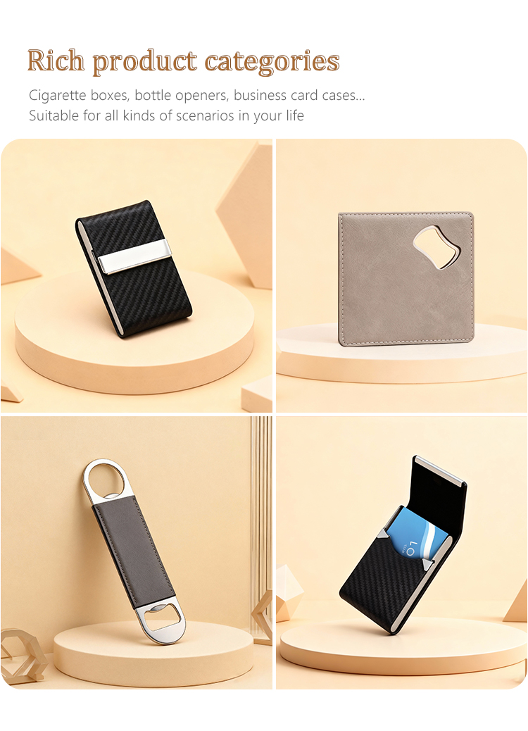 Custom Laser-Engraved PU Leather & Stainless Steel Series - Personalized Mirror with Case, Business Card Holder, Pop-Up Card Wallet, and Cigarette Case (Regular & Slim) & Multi-Size Bottle Opener