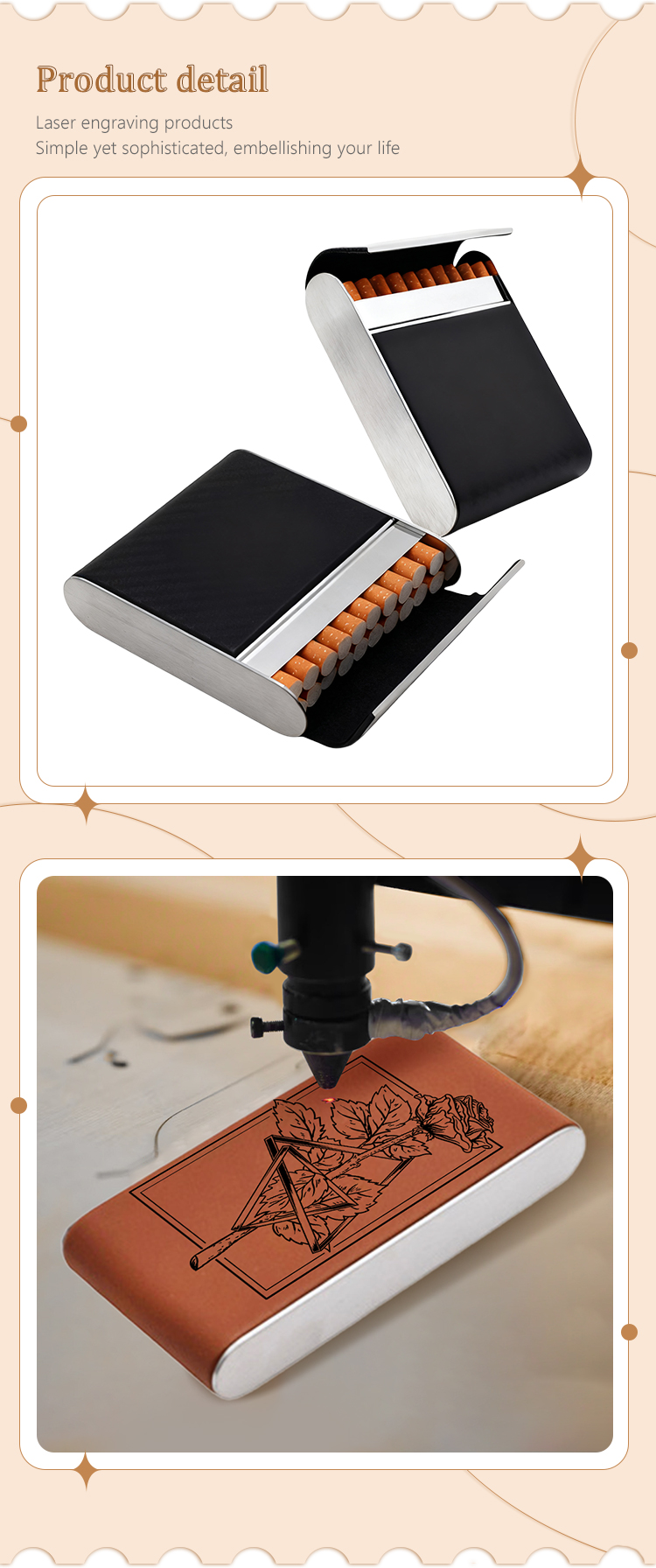 Cigarette Cases: Available for regular and slim cigarettes, these cases keep your smokes protected and personalized, ideal for gifting or personal use.