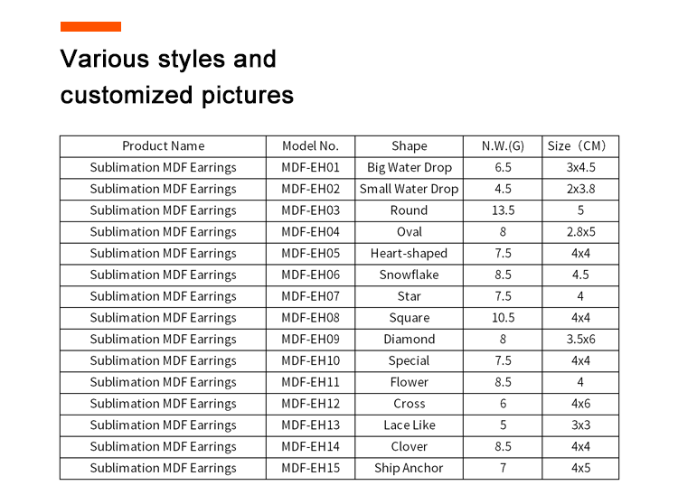 Customized Sublimation Printing Earrings,DIY Craft. Fashion shapes are available.
