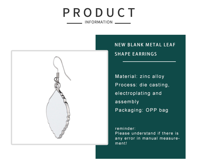 • Single side printable Sublimation Blank Leaf Shape Earring