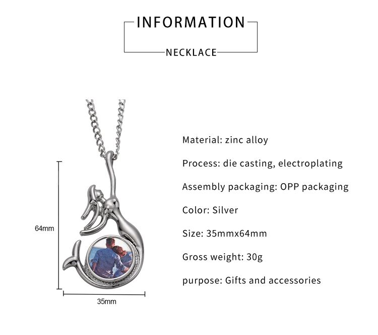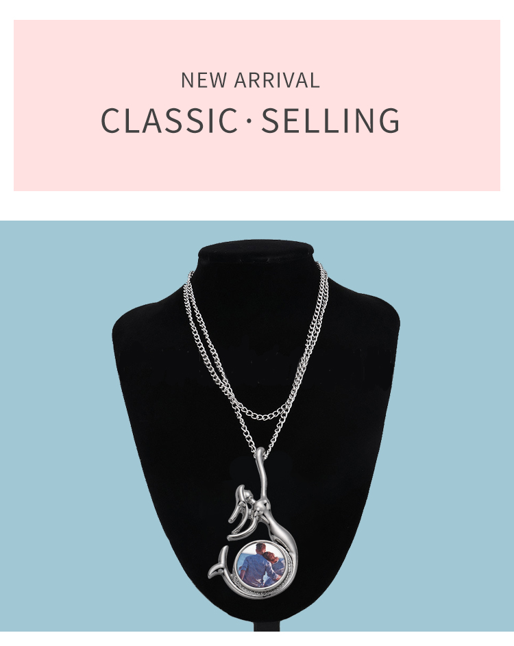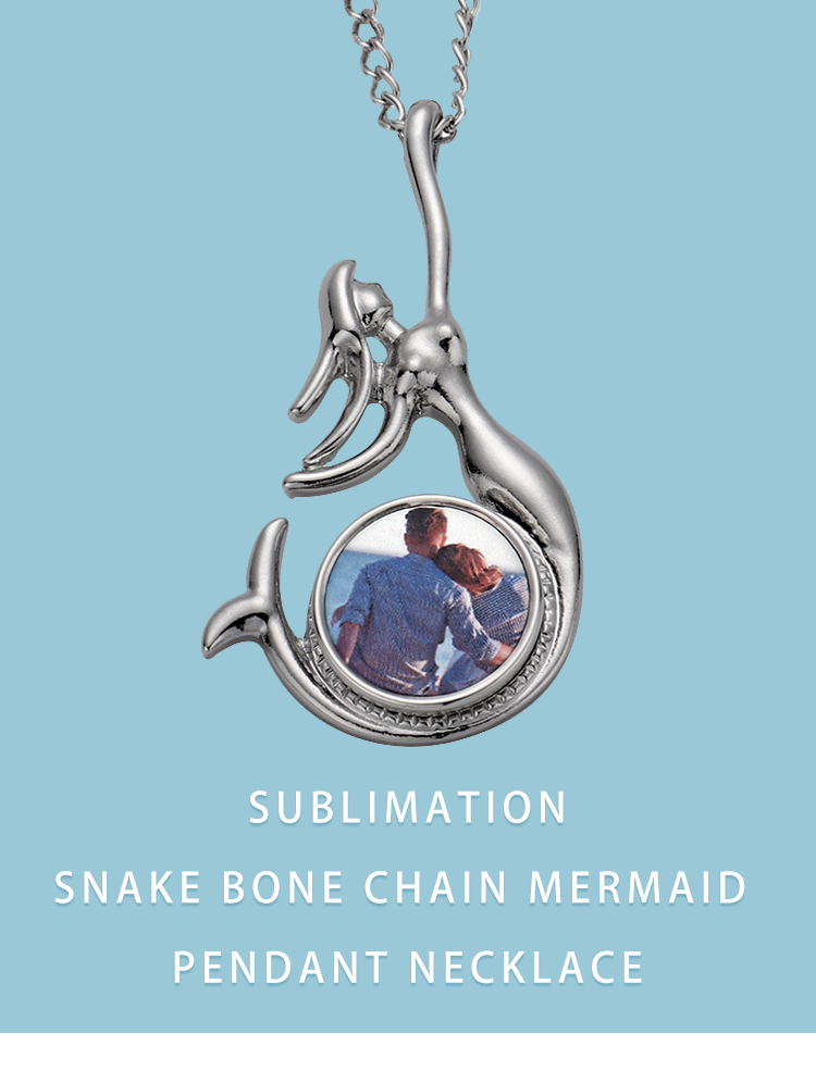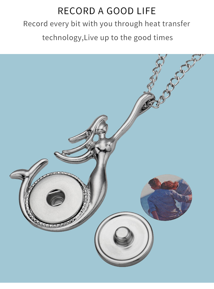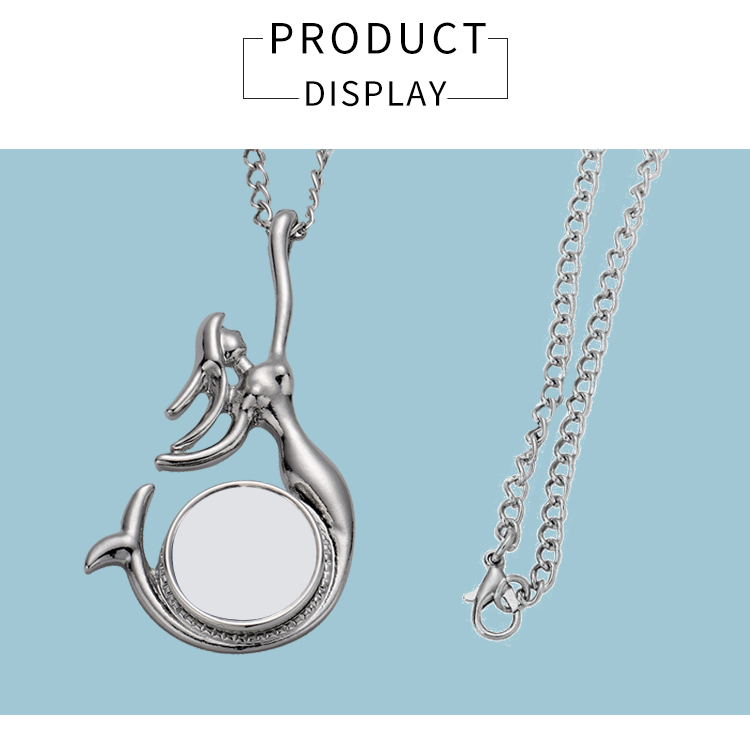 Fashion Sublimation Blank Metal Sweater Ornament Mermaid Necklace With Round Snap