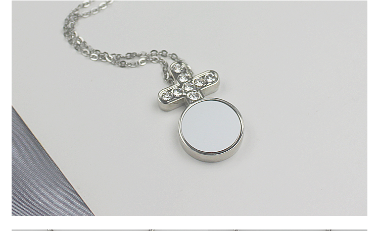 Simple fashion design with sublimation insert. Silver necklace is super joker item to match any occasions and clothes.