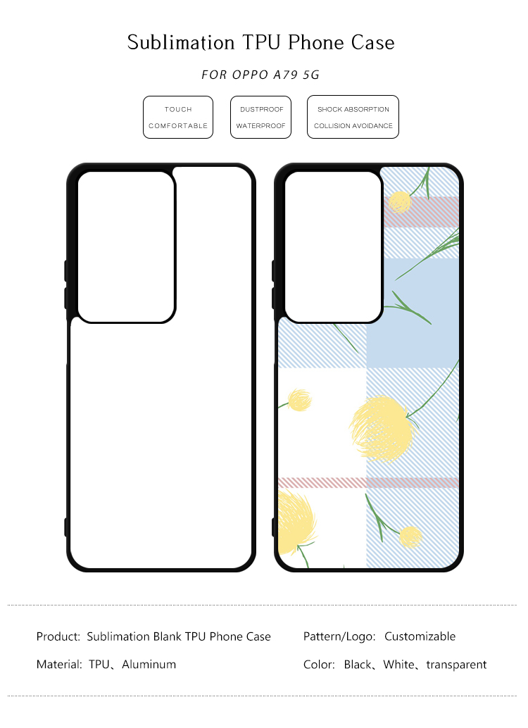 For Oppo A79 5G Sublimation 2D TPU Case With Aluminum Insert DIY Phone Shell