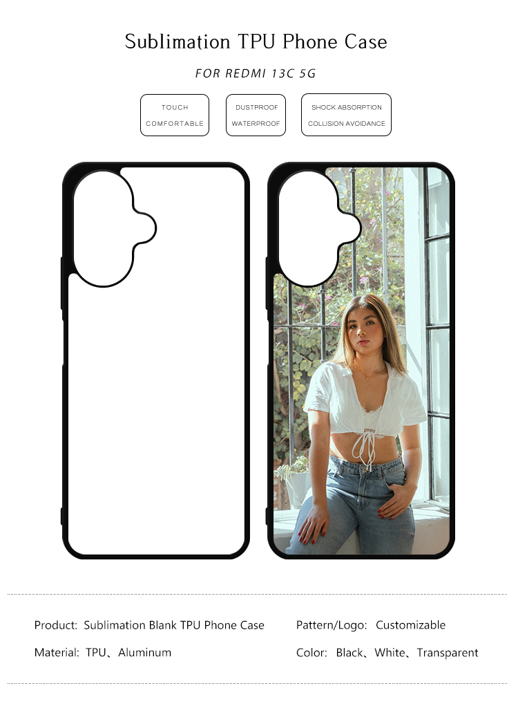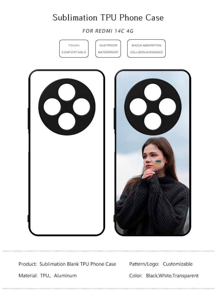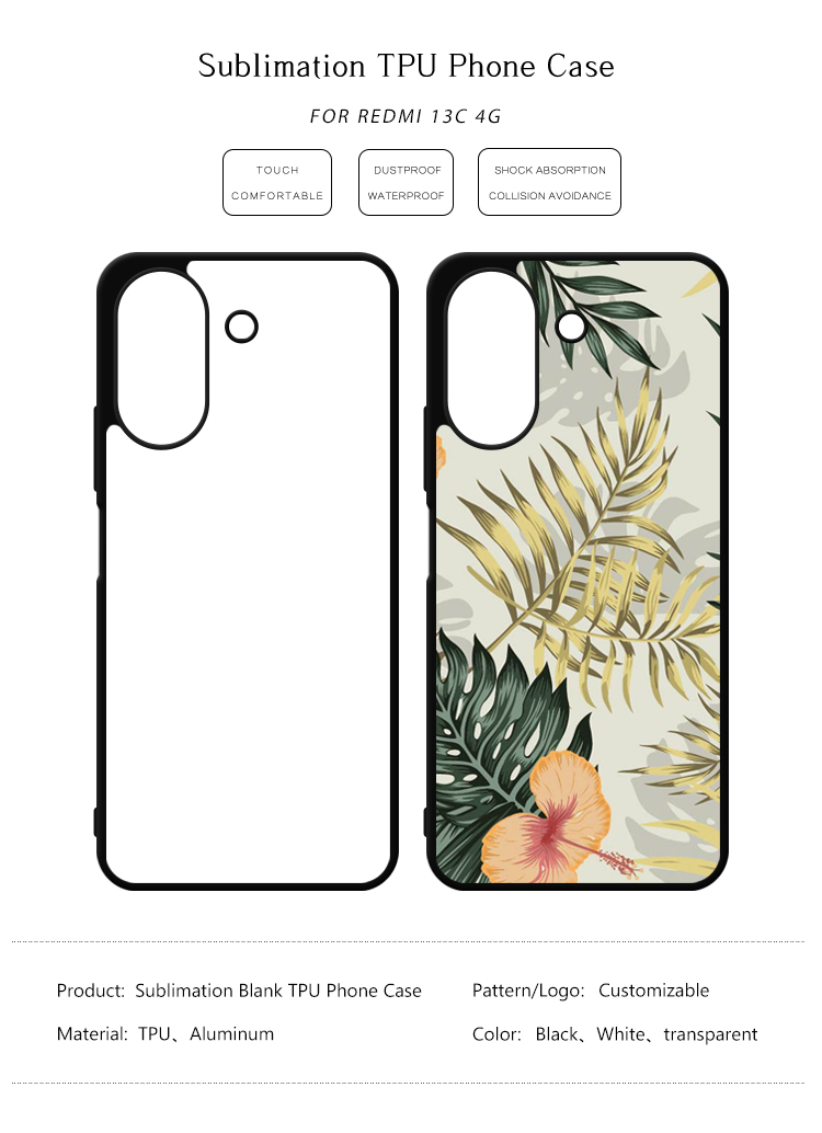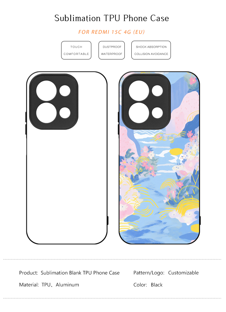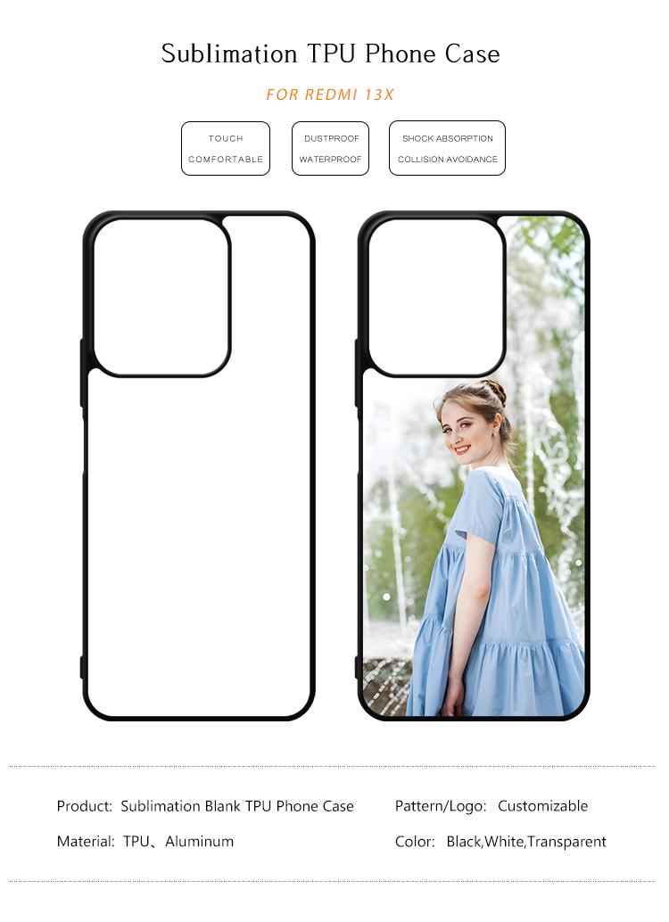 For Redmi 15C 4G EU, 13X, 14C 4G,Redmi 13C 5G,13C 4G DIY Logo Sublimation Blank 2D TPU Phone Case With Aluminum Insert