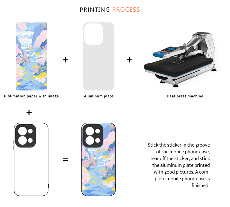 Feature: Various styles with competitive price; Premium quality hard rubber TPU sublimation case; Includes a pure white printable metal insert panel; Forged from high grade hard plastic, durable and light weight; Phone case includes a peel-away strong self-adhesive back to affix your insert to after sublimation.
