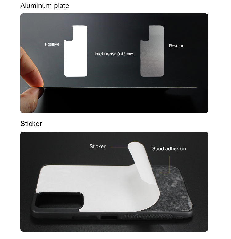 Feature: Various styles with competitive price; Premium quality hard rubber TPU sublimation case; Includes a pure white printable metal insert panel; Forged from high grade hard plastic, durable and light weight; Phone case includes a peel-away strong self-adhesive back to affix your insert to after sublimation.