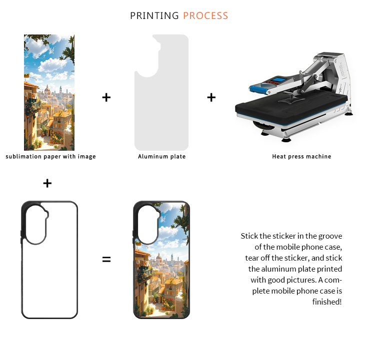 Feature: Various styles with competitive price; Premium quality hard rubber TPU sublimation case; Includes a pure white printable metal insert panel; Forged from high grade hard plastic, durable and light weight; Phone case includes a peel-away strong self-adhesive back to affix your insert to after sublimation.