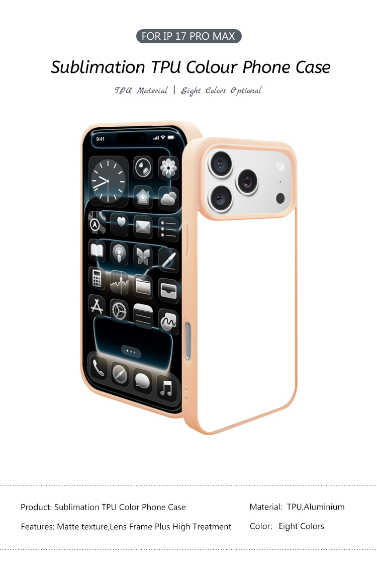 New 2D Sublimation TPU Colorful Phone Case with Inside Black Flocking for iPhone 17, 16,15,14 Series DIY Shell with Aluminum Sheet