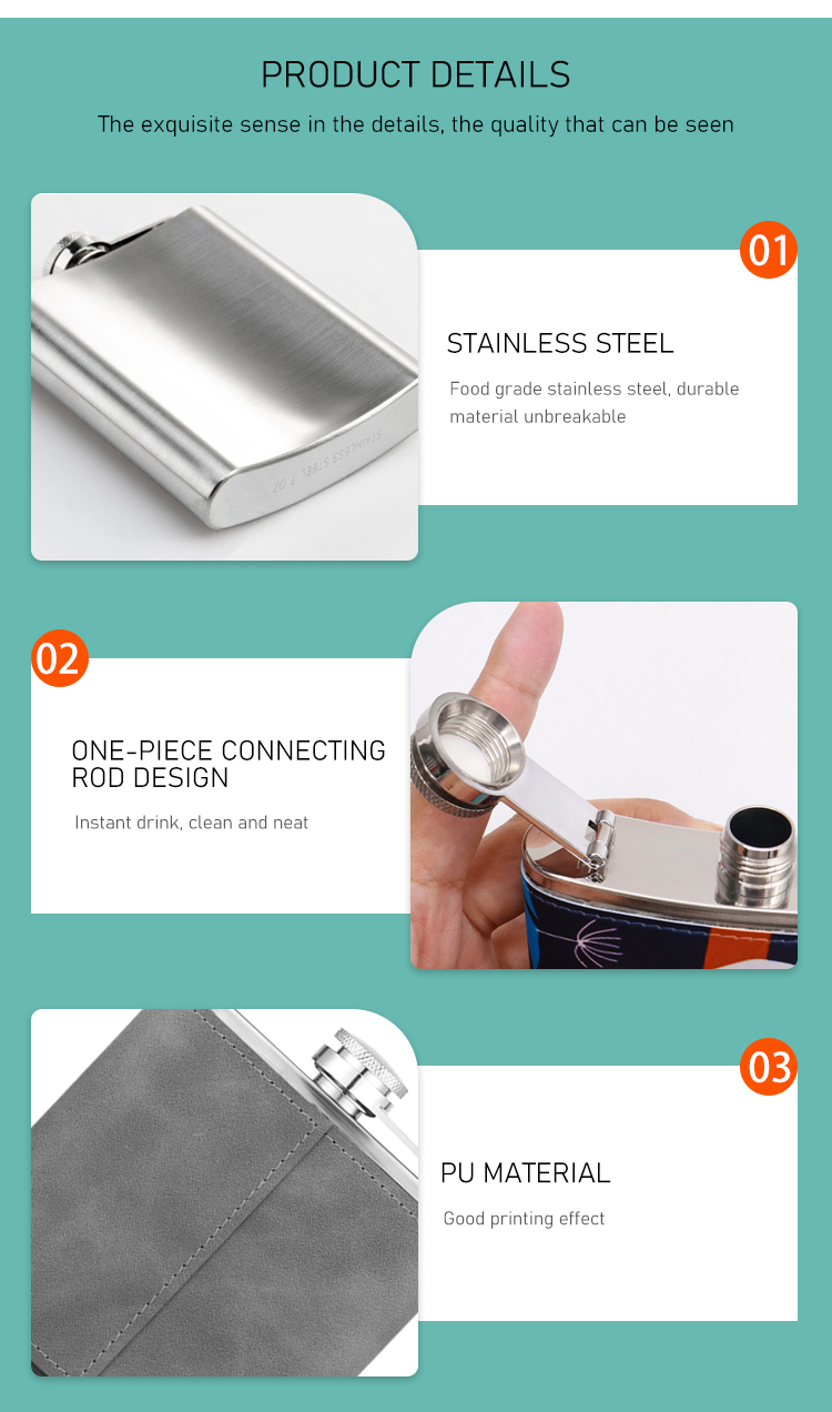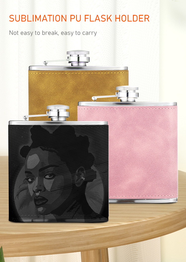 Quality Sublimation Coating:The sublimation PU leather flask with is ready for sublimation print.