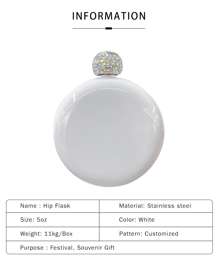 • New Arrival Blank White Sublimation Stainless Steel 5oz Hip Flask support Custom Pattern