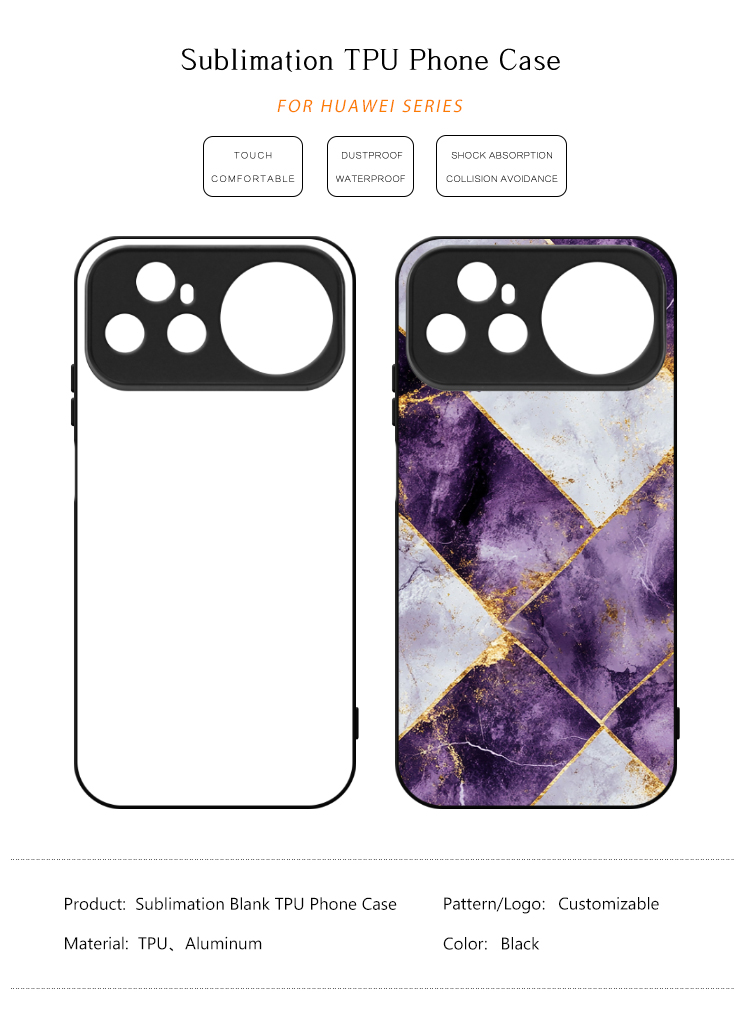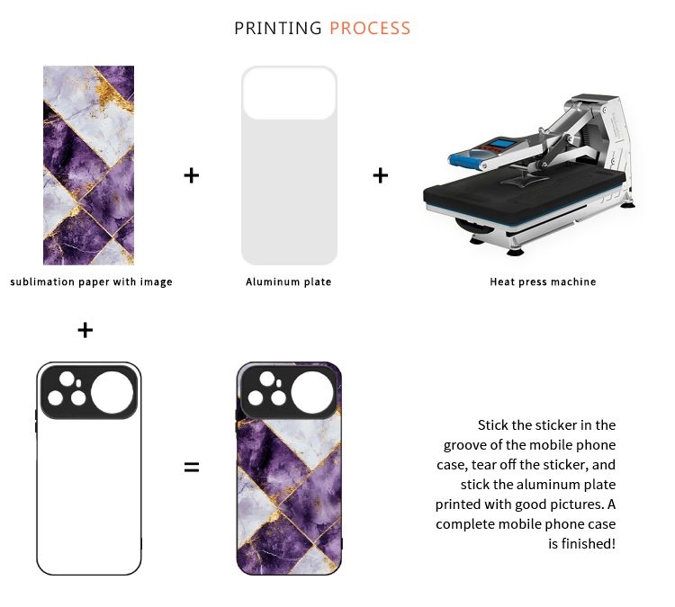 Various styles with competitive price; Premium quality hard plastic sublimation case; Includes a pure white printable metal insert panel; Forged from high grade hard plastic back, Soft rubber smooth sides; Phone case includes a peel-away strong self-adhesive back to affix your insert to after sublimation.