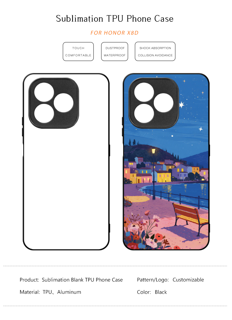 For Honor X8D, X6B 4G,X8B,X8C,Honor 90GT,Honor Series Sublimation Blank Rubber 2D TPU Phone Case Cover
