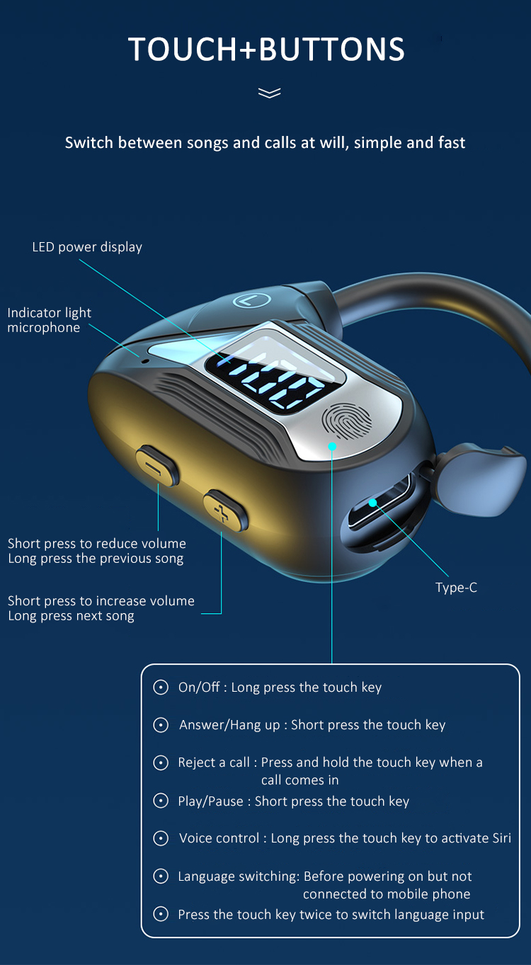 New Arrival Open-Ear Air Conduction Headphones, Wireless Earphones Bluetooth Sports BT Headset