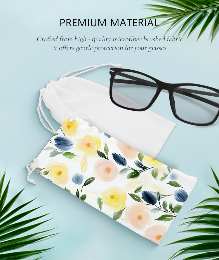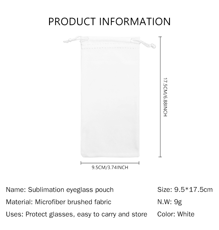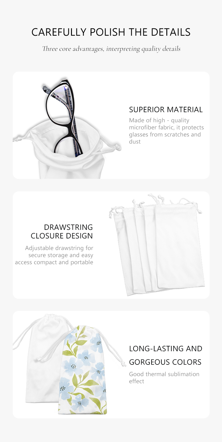 Portable Sublimation Blank Eyeglass Bag - Microfiber, Drawstring Closure - Ideal for Promotions, Ads & Creative Gifts