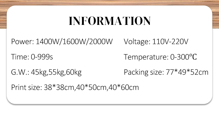 Our main equipment are including 3D Vacuum Machine, Flat Heat Press Machine, Mug Press, Cap Press, Plate Press, as well as Combo Heat Press.