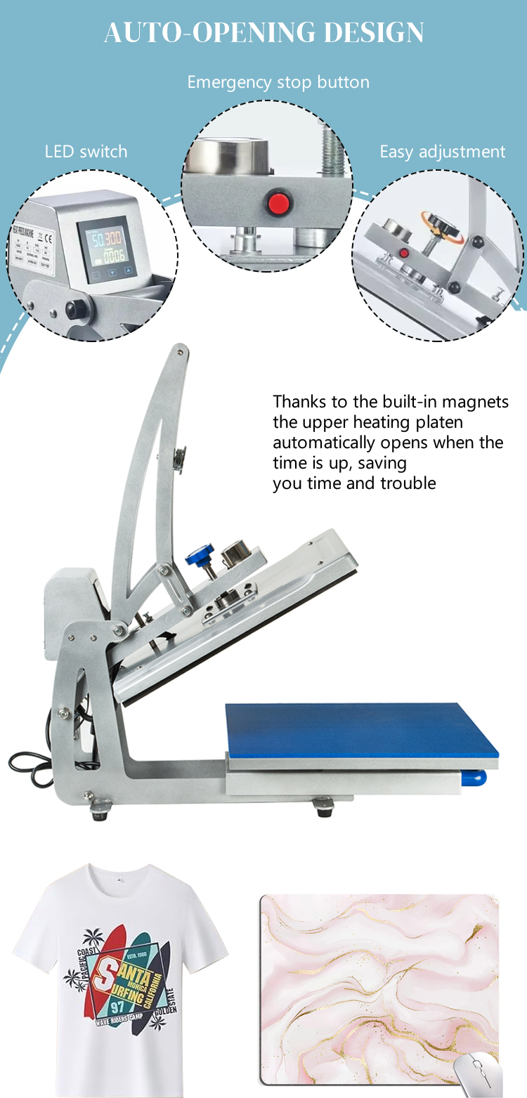 • Semi-automatic Magnetic Heat Press Machine Flat Sublimation Machine for T-shirt Towel DHP-1702
