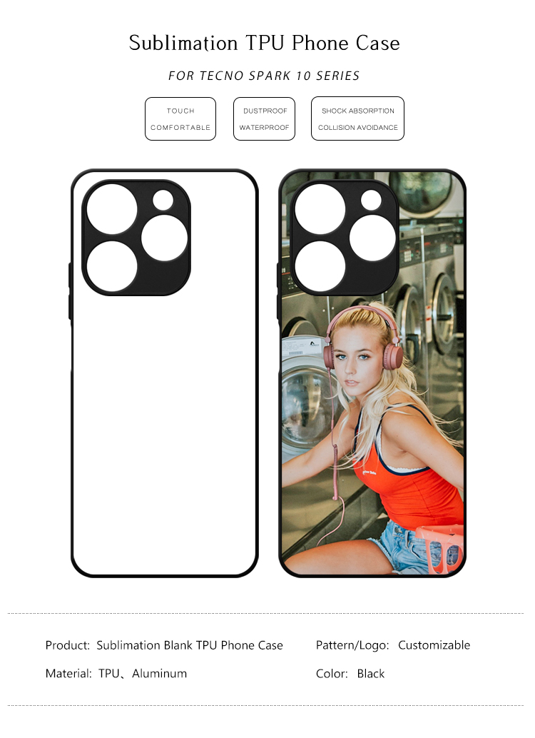 Smooth Sides!!! For Tecno Spark 10 Series Sublimation 2D TPU Silicone Phone Case Cover With Aluminum Insert