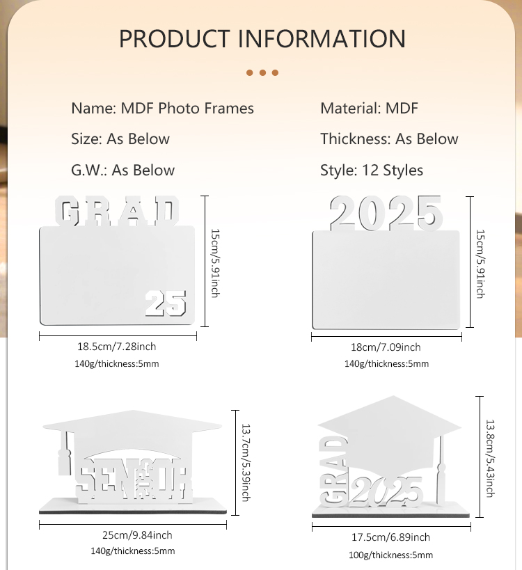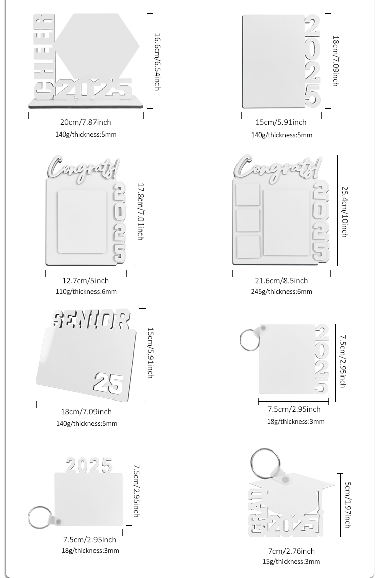 Sublimation 17 Styles MDF Grad 2025 Photo Frame/Keyring Crafts Sublimation Blanks Photo Frame for Graduation Series Custom MDF Keychain Frame