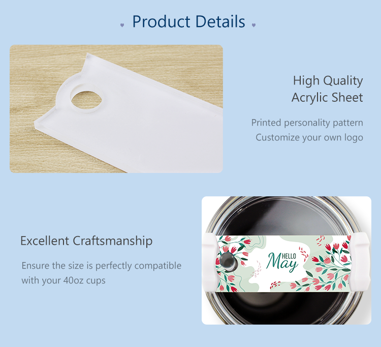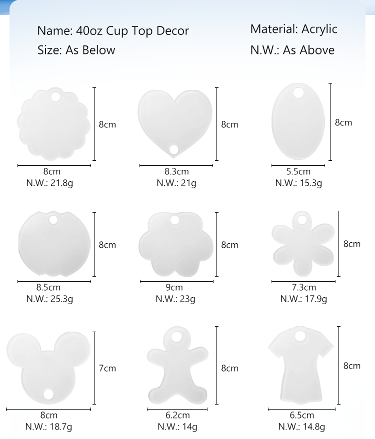 Sublimation 40oz Car Cup Lip Decorative Sheet Acrylic Cup Top Decoration 19 Shapes Available