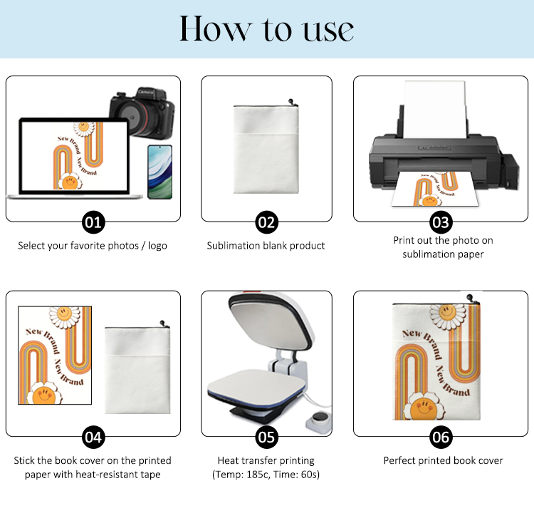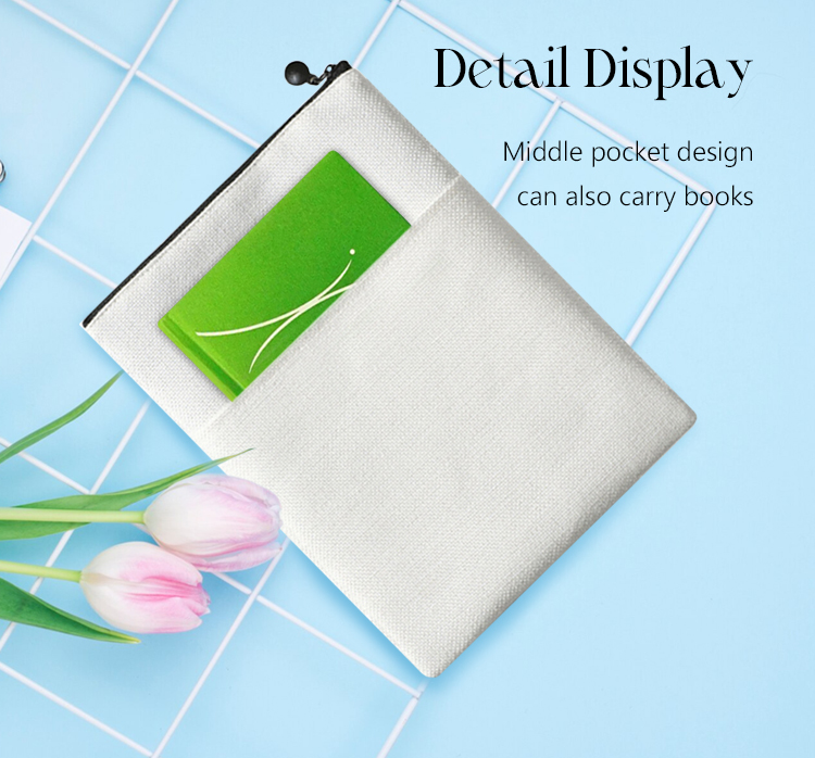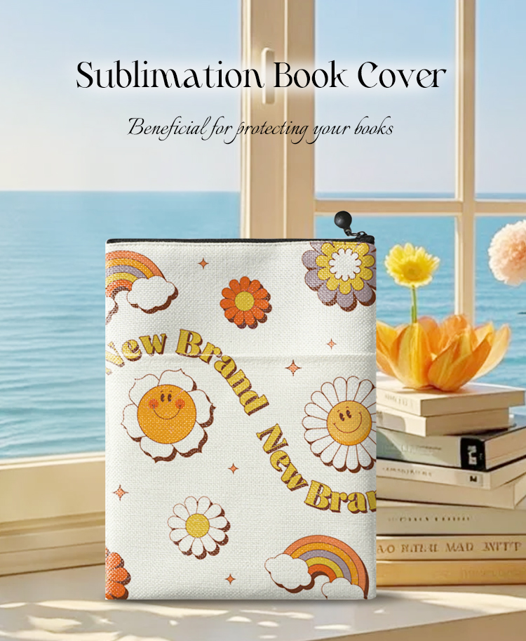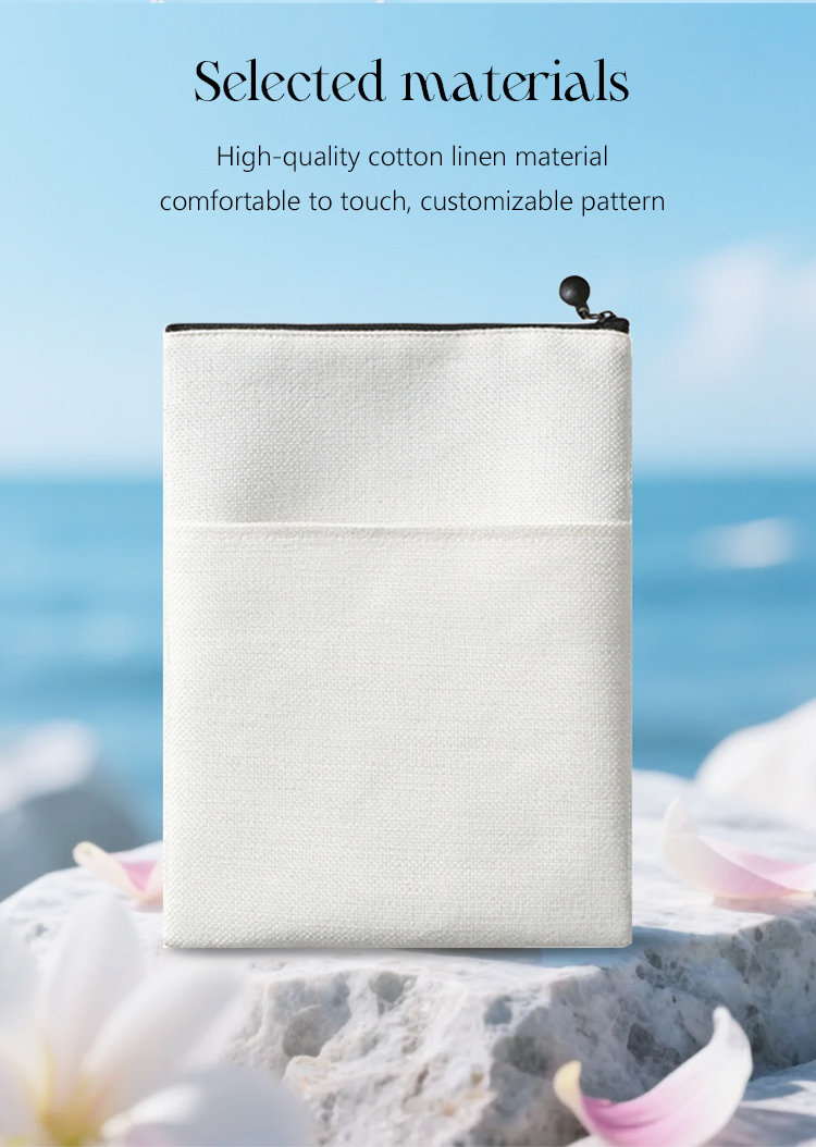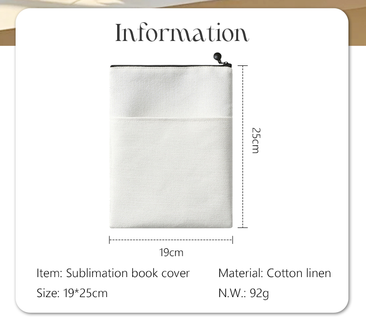 Sublimation Blank Cotton Linen Book Sleeve, Zippered Book Cover Pouch, Dustproof Book Protector with Printable Surface