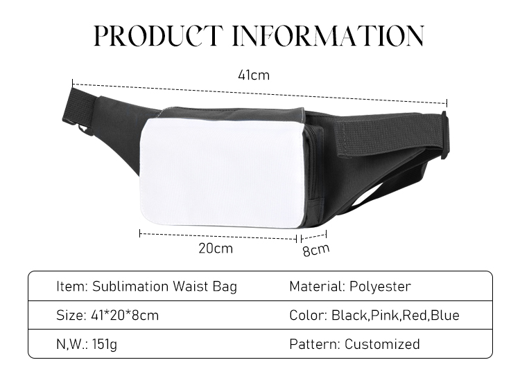 Sublimation Blank Crossbody Fanny Pack, 4 Colors (Black/Blue/Red/Pink), Buckle Strap Design, Convertible Waist Bag for Custom Printing