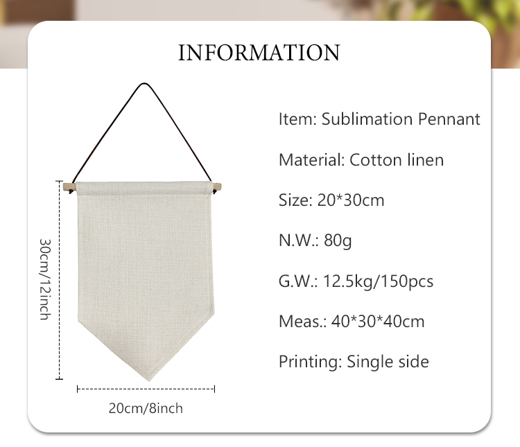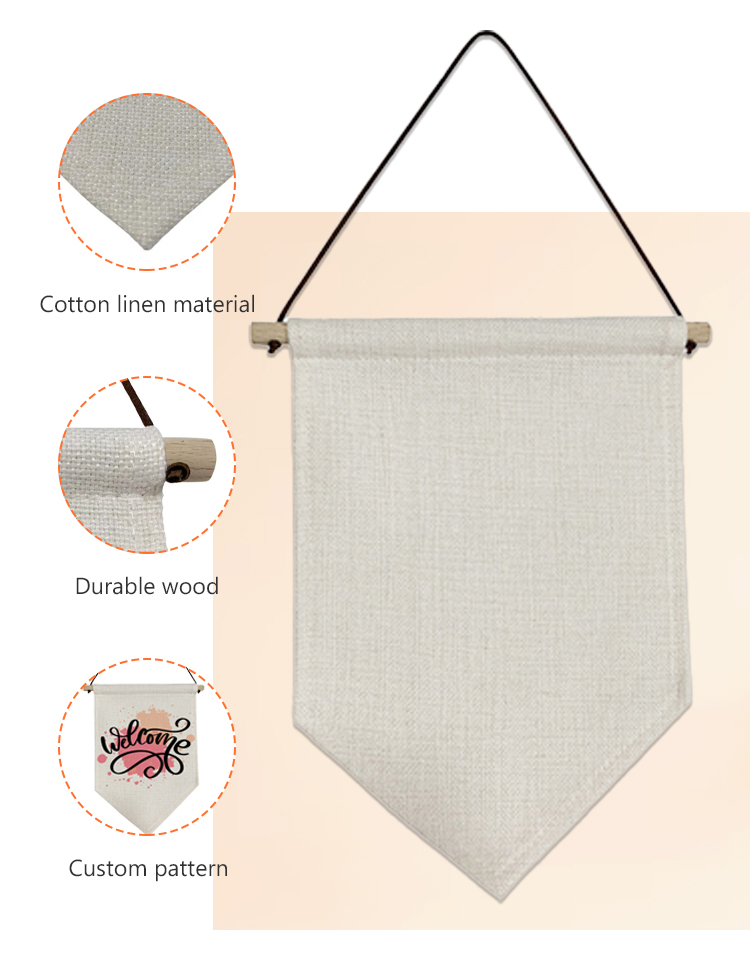 Sublimation Blank Linen Pennant Wall Hanging Display Banner Holder Single Side Printing Heat Press Decorative Door Wall Hanging Flag