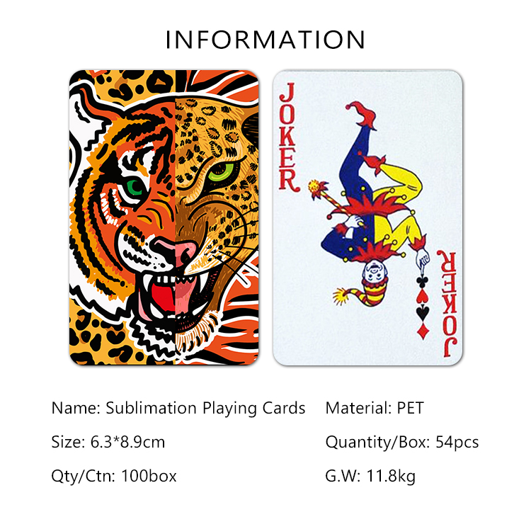 Sublimation Blank PET Game Playing Cards Suitable for Double-sided Printing 54PCS/BOX Poker Cards for DIY Games Cards Learning Cards Business Card 6.3*8.9CM