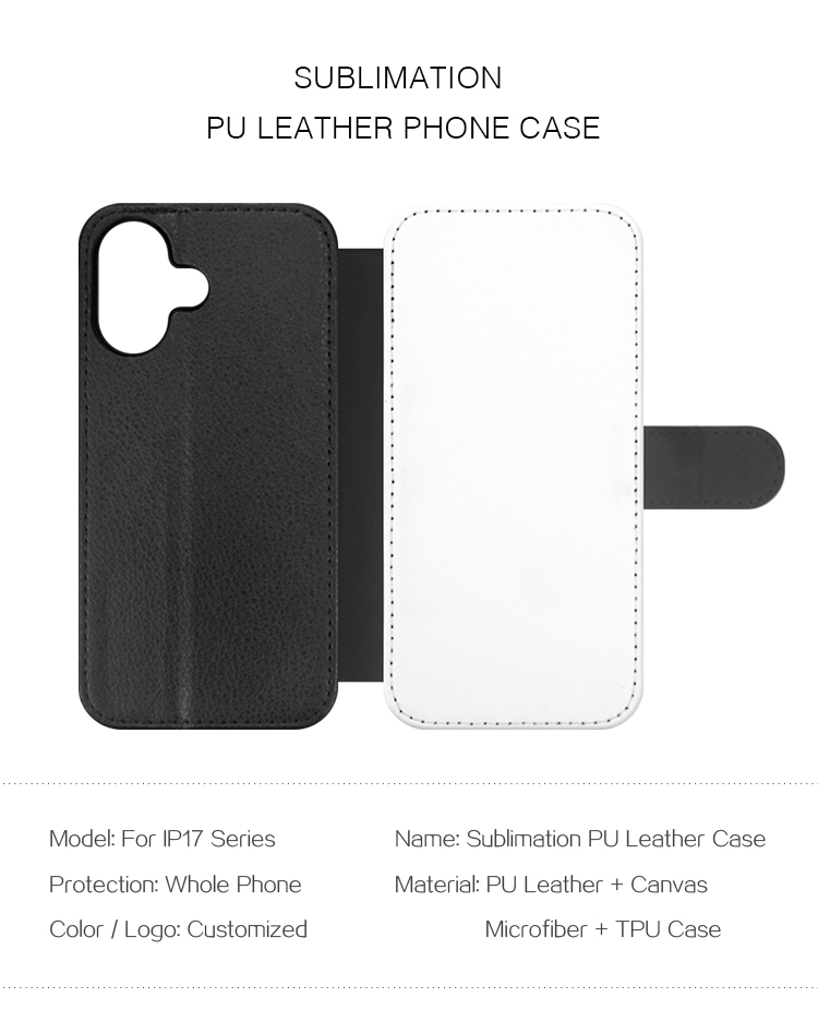 Sublimation Blank PU Leather Flip Phone Case for iPhone 17, 16, 15 Series, iPhone Series TPU Inside Wallet with Card Holder and Stand
