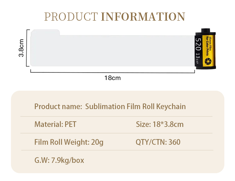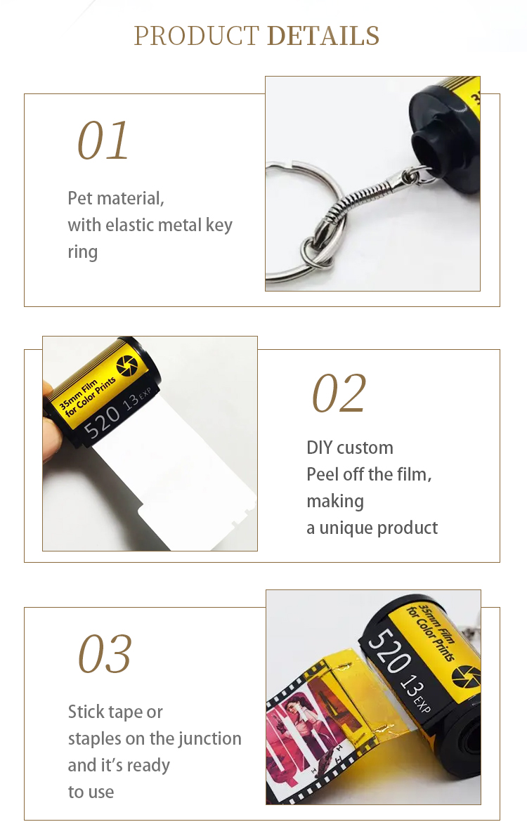 Sublimation Camera Film Roll Keychain Customized Keyrings with 10 Photos Album Picture