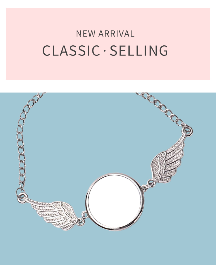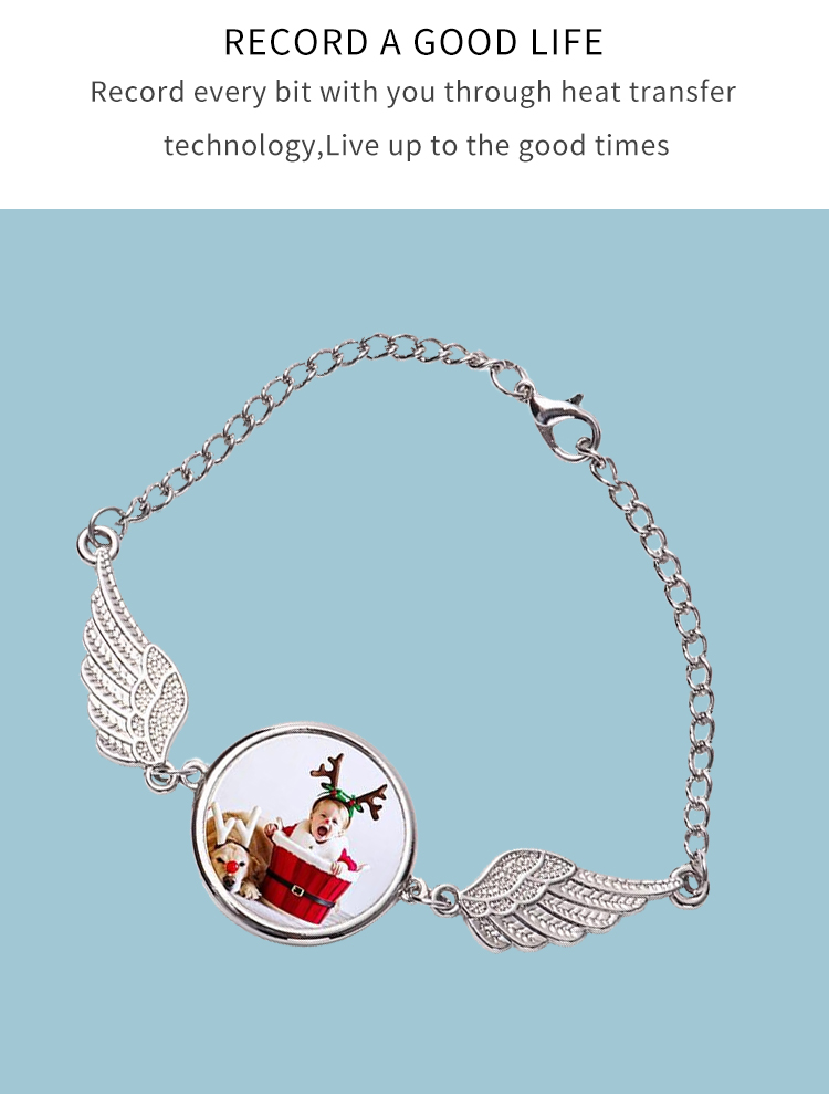Fashion Sublimation Bracelet Angel Wing With One Round Metal Insert Printable
