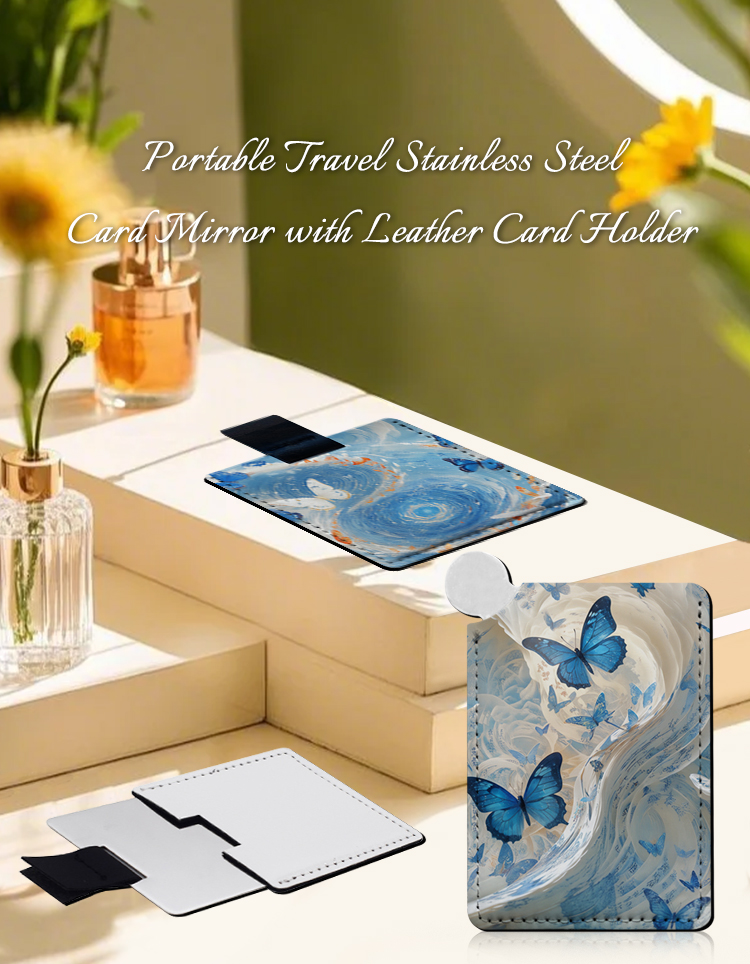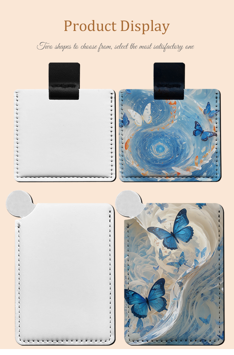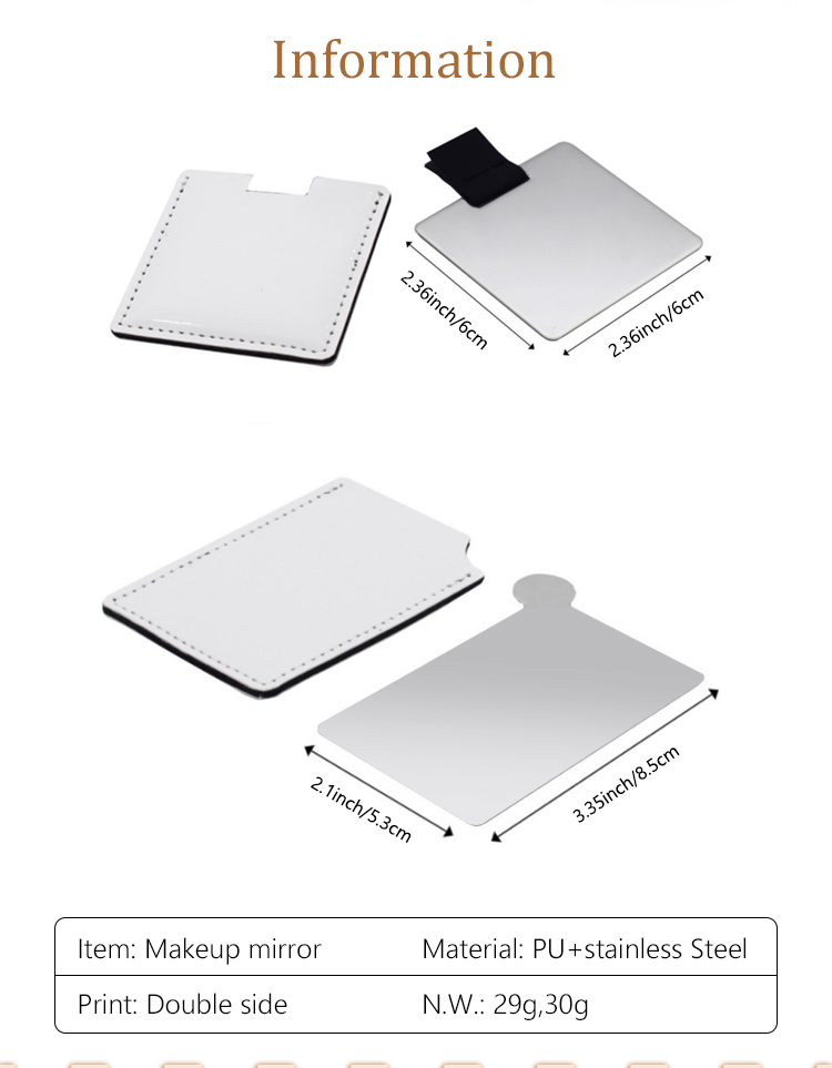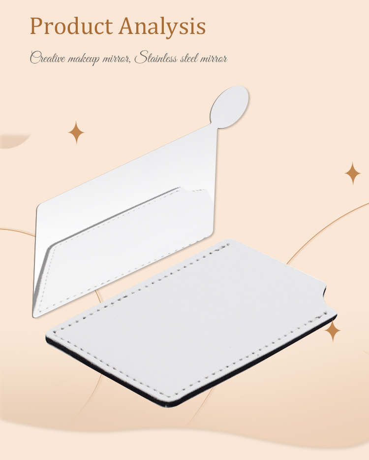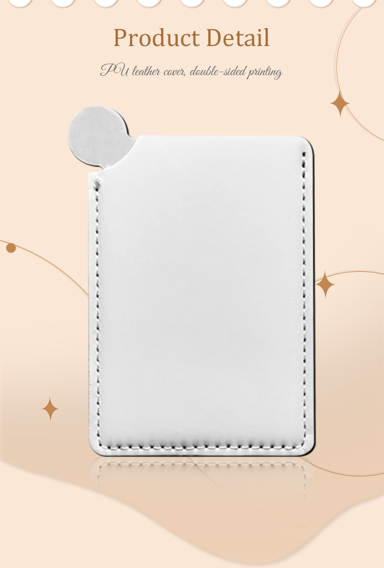 Sublimation Printed PU Leather Pocket Stainless Steel Mirror Custom Heat Transfer Leather Case Stainless Steel Mirror