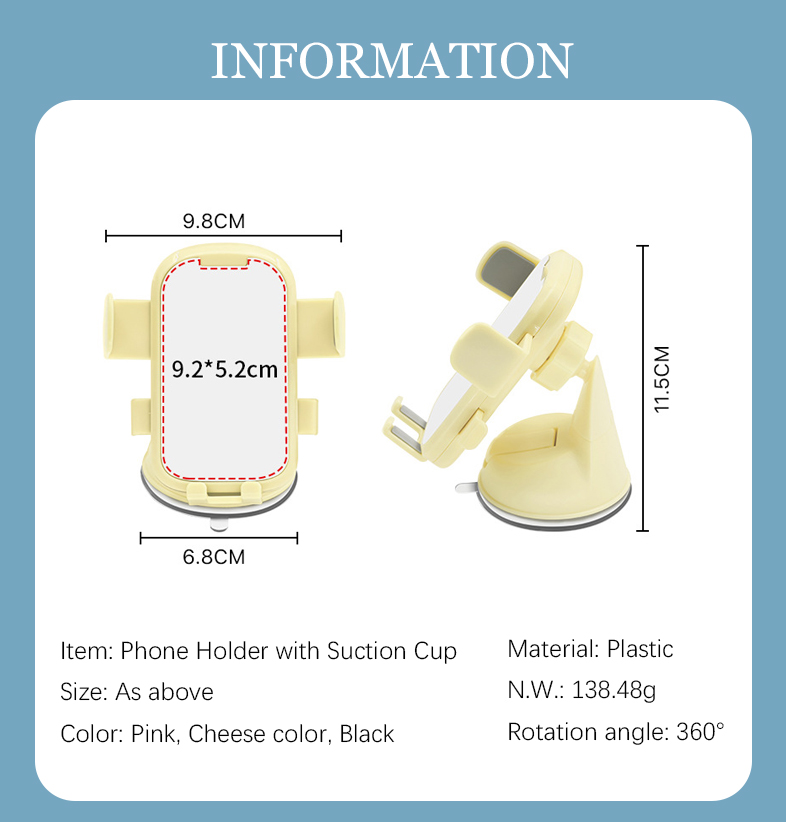 This 360° rotatable car phone holder combines practical functionality with customizable style, designed to securely mount your phone on dashboards, windshields, or other smooth surfaces via its ultra-strong suction cup.