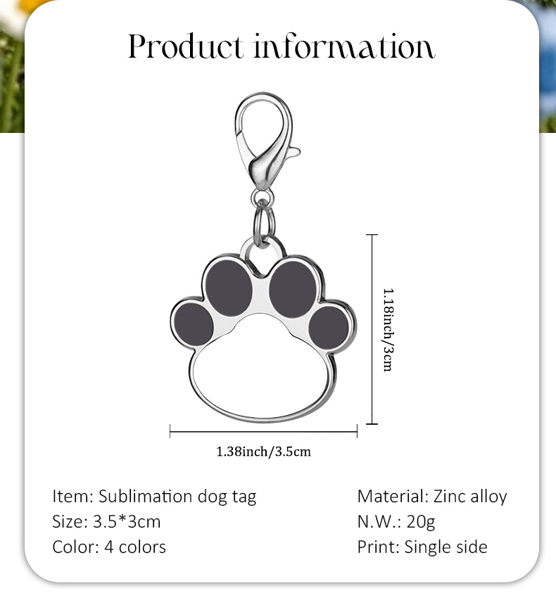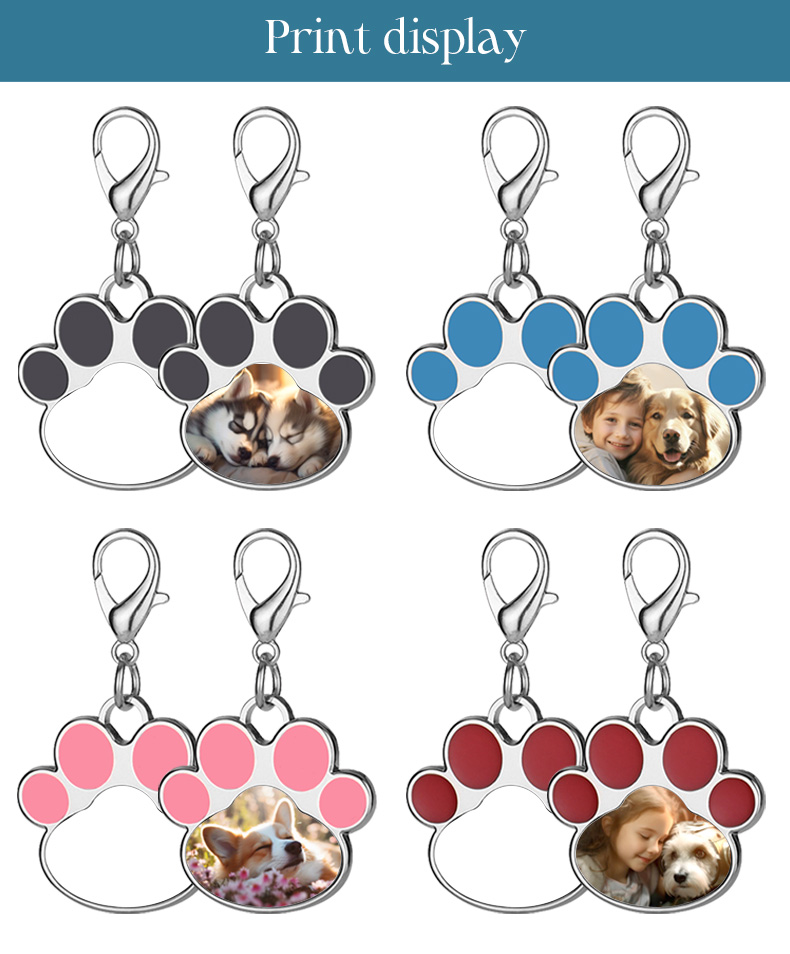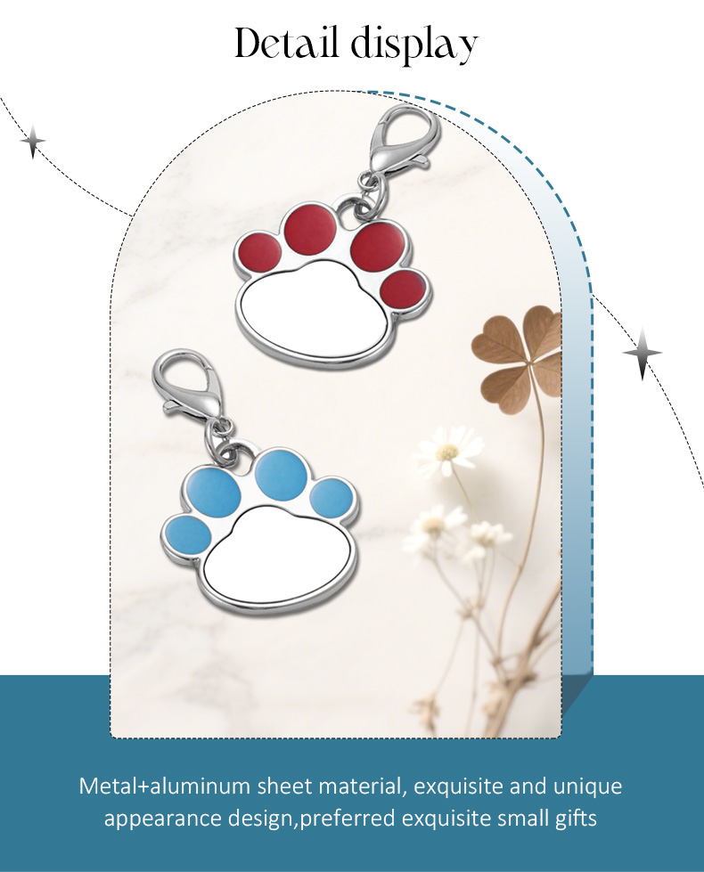 Sublimation Metal Keychain Pet Tags Single-sided Printing DIY Zinc Alloy Blank Colorful Dog Paw Dog Tag