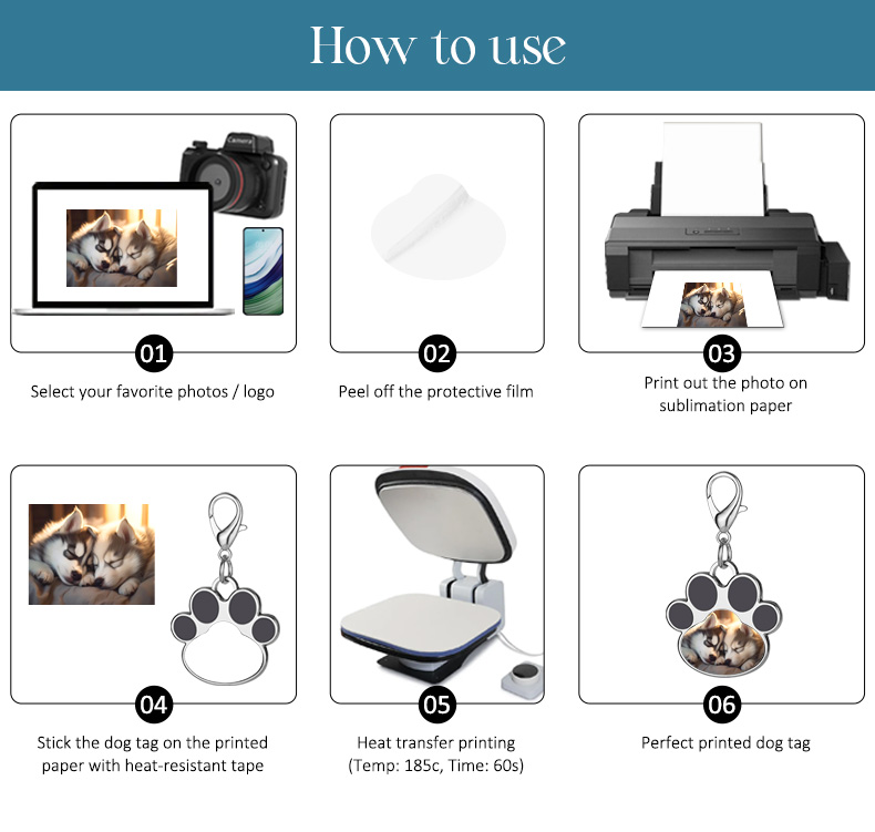 Premium quality Pet Tags Sublimation printing Pet Tag Custom Dog Tag One-sided printing Dog Tag Packing: Individual OPP Bag